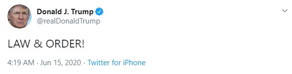 a. Trump tuiteó Ley y orden dos veces en junio de 2020: